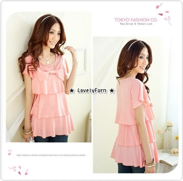 韩版甜美淑女蛋糕蝴蝶结棉质上衣