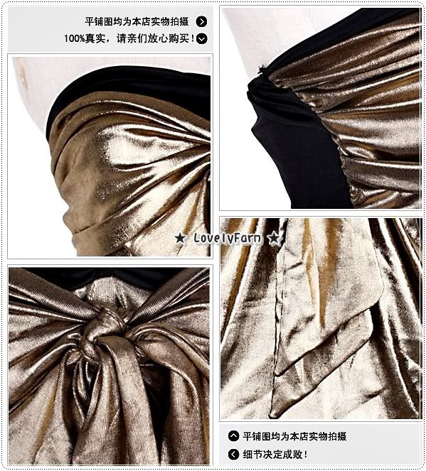 韩版拼色亮面蝴蝶结挂脖丝棉洋装连身裙