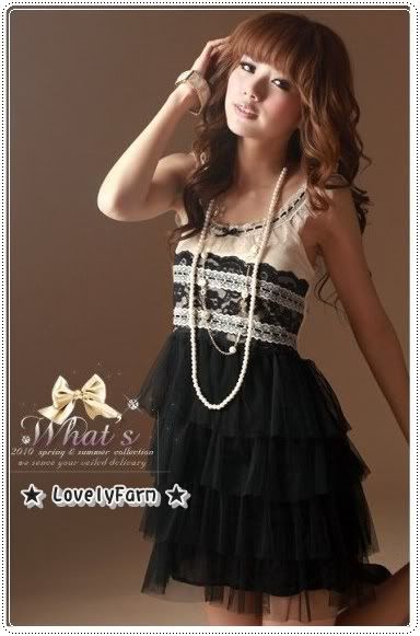 韩版蛋糕蕾丝缎带纱裙洋装连身裙
